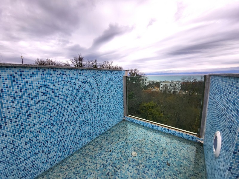 Strešný apartmán má celkovú rozlohu cca 193 m² a tri spálne - každá s vlastnou kúpeľňou, obývacou izbou s kuchyňou a jedálenským kútom, dvomi toaletami, komorou a veľkou, krytou terasou s bazénom a krásnym výhľadom na more a okolie.