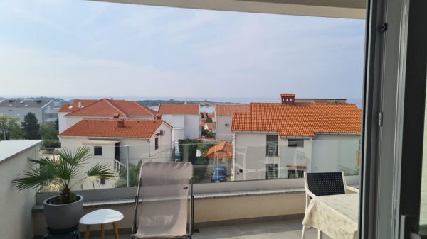 Na predaj ponúkame moderný apartmán s terasou a krásnym výhľadom na more v Novalji na ostrove Pag s trajektovým a mostným spojením s pevninou.